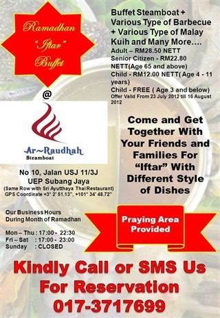 Ok .. dengan ikhlasnya aku senaraikan beberapa lokasi dan promosi buffet Ramadhan untuk tahun ini 2012 bersamaan 1433 Hijrah …Â